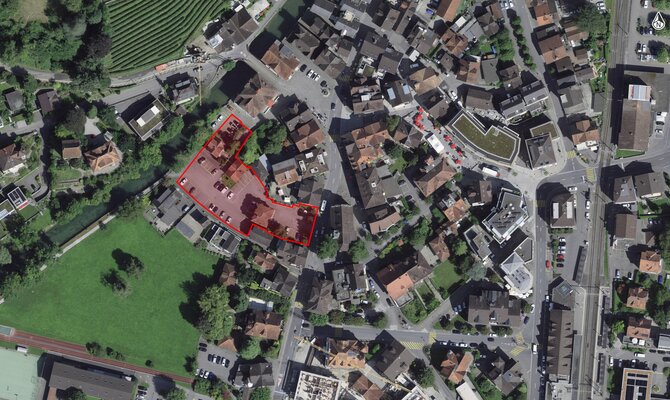 Der Perimeter liegt nur wenige Schritte vom Dorfplatz entfernt, eingebettet zwischen dem historischen Rathaus, dem Hotel Metzgern, der Brünigstrasse und der Rathausgasse. Mit der Nähe zu Bahnhof, Schulen, Restaurants und Geschäften bietet die Lage eine hervorragende Ausgangsbasis für Wohnen und Gewerbe.