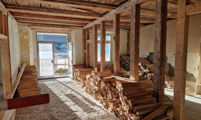 Im Inneren blieb die bauzeitliche Struktur mit der zentralen zweiläufigen Treppe und den versetzten Korridoren erhalten. Die historischen Binnenwände wurden weitgehend respektiert und wo nötig sorgfältig instandgesetzt. So bleibt die einzigartige Atmosphäre des Hauses erhalten, während moderne Anforderungen an Nutzung und Sicherheit integriert werden.